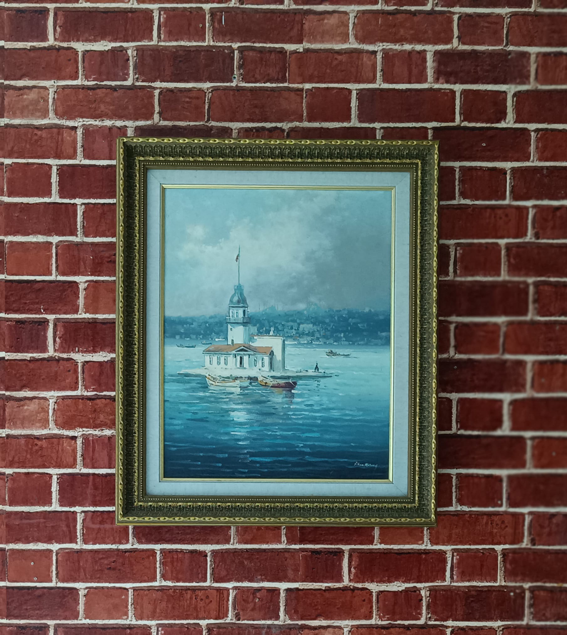 Kasnak üzerine kanvas kız kulesi yağlıboya tablo çerçeve kalınlığı 8 cm