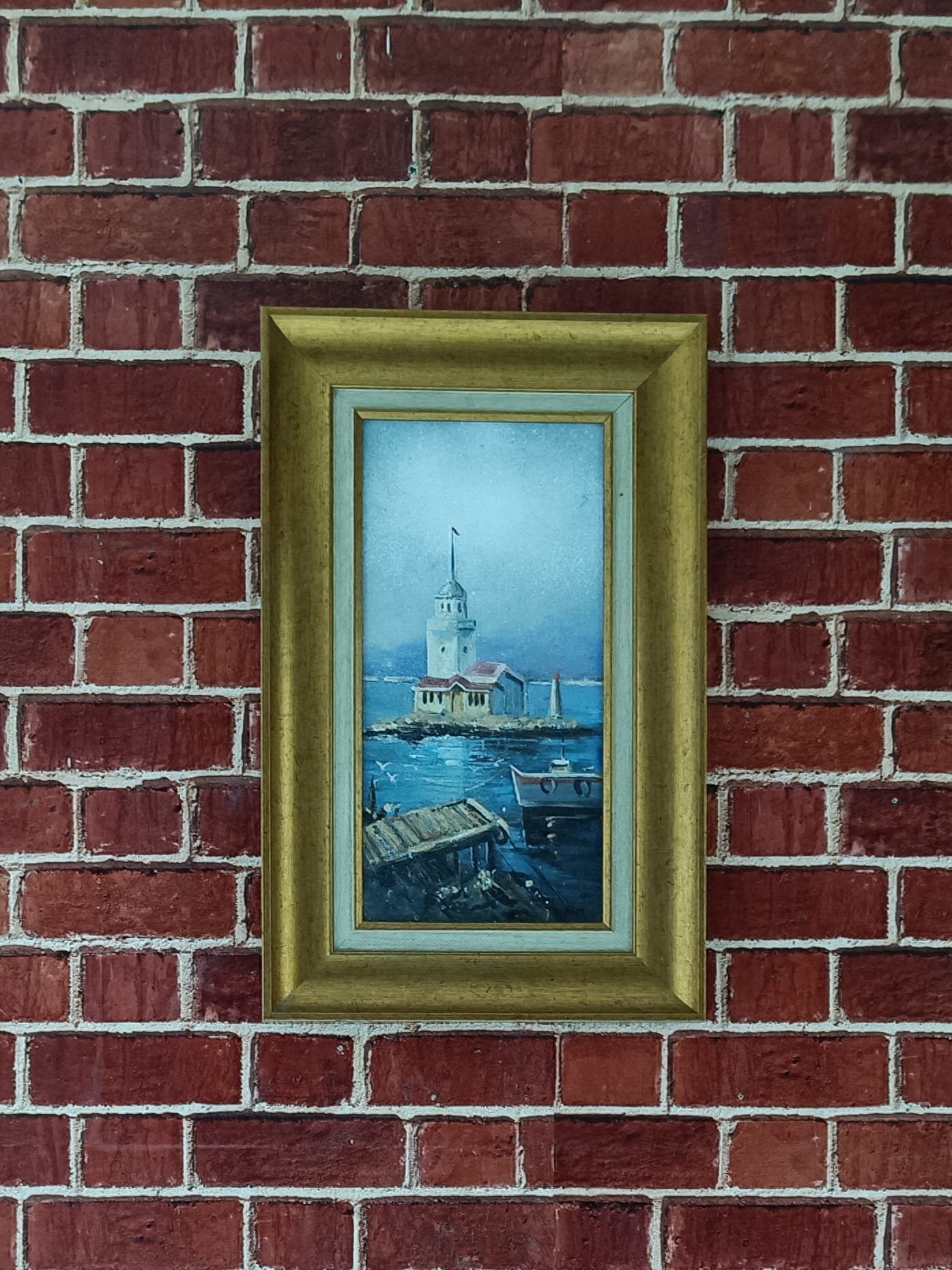 Kasnak üzerine gerilmiş kanvas el yapımı yağlı boya paspartu ve çerçeve İlhan kılıç kız kulesi çerçeve kalınlığı 10 cm